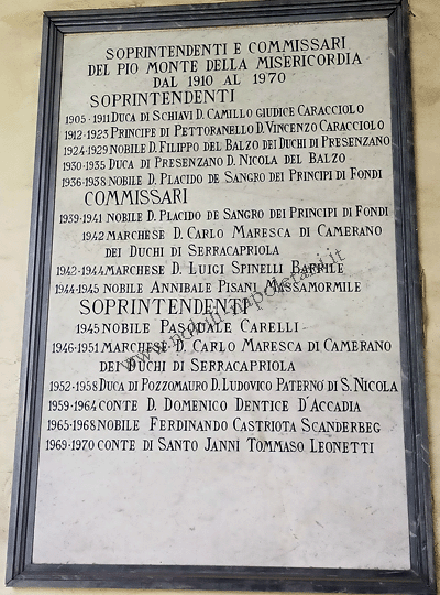 Nicola del Balzo, duca di Presenzano, fu governatore dell'Ospedale Elena d'Aosta di Napoli dal 1924 al 1925 e soprintendente del Pio Monte della Misericordia dal 1930 al 1935; il nobile Filippo del Balzo dei duchi di Presenzano fu soprintendente del Pio Monte della Misericordia dal 1924 al 1929.