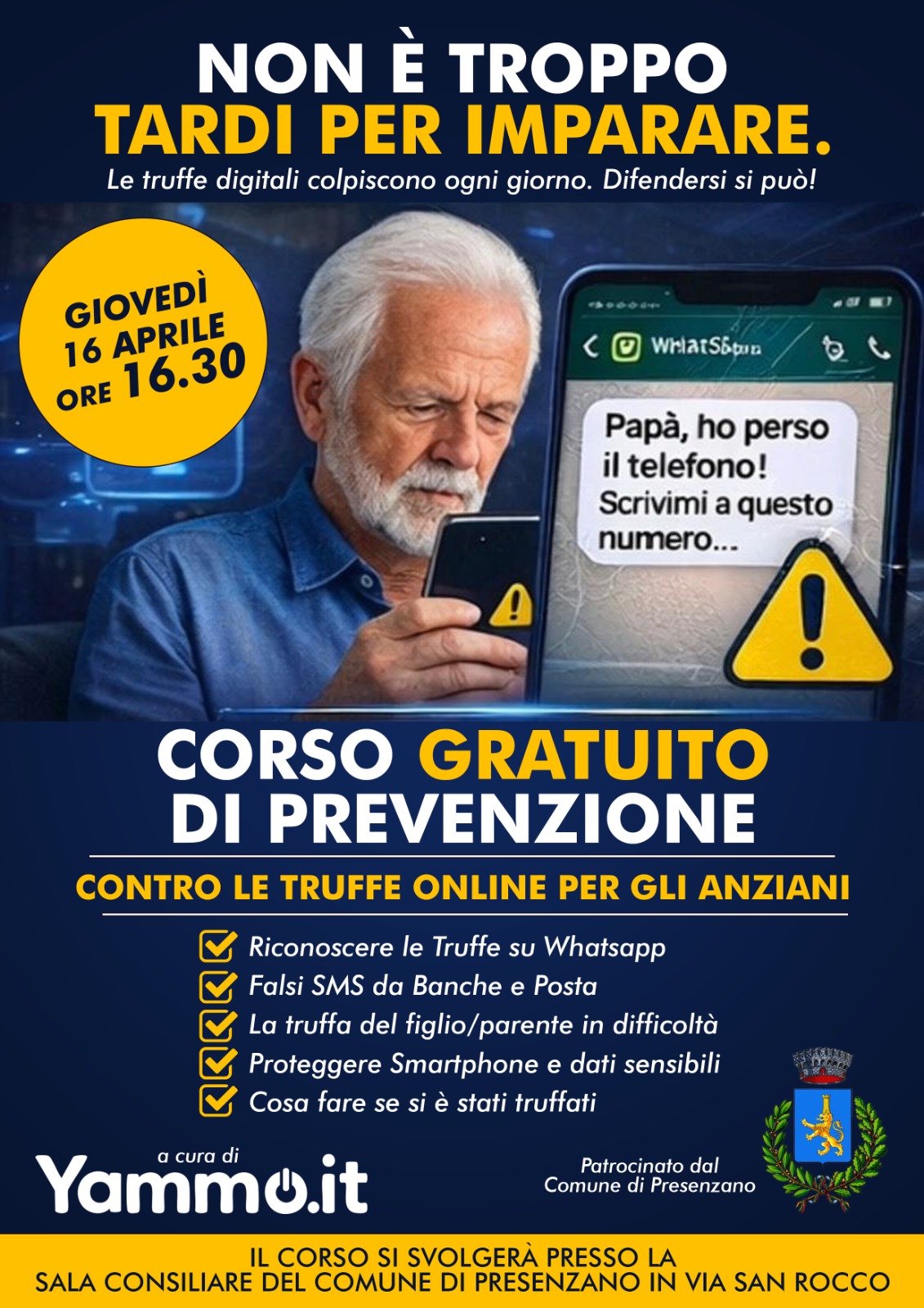 Il Comune di Presenzano, in collaborazione con Yammo.it, è lieto di invitare tutta la cittadinanza a un importante appuntamento dedicato alla sicurezza digitale.